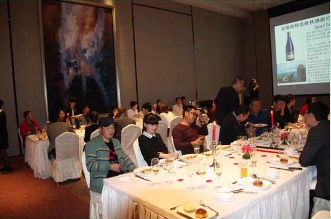 七点左右,晚宴正式开始,此次晚宴准备了两款白葡萄酒和一款红葡萄酒,白葡萄酒自然醇香、柔顺细致,红葡萄酒浓郁醇厚、层次丰富,同时还特别邀请专业品酒师对所品葡萄酒进行介绍,大家在觥筹交错之中共享美好之夜。