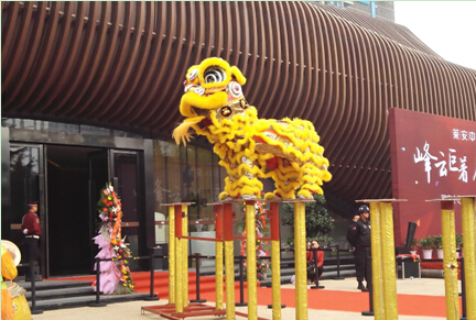 上午十点半,伴随着主持人热情洋溢的登台开场,拉开了一场气势恢宏的舞狮表演,狮头栩栩如生,眼睛一眨一眨,像是在对来访的嘉宾表达欢迎之意,至此莱安中心封顶仪式正式拉开序幕。