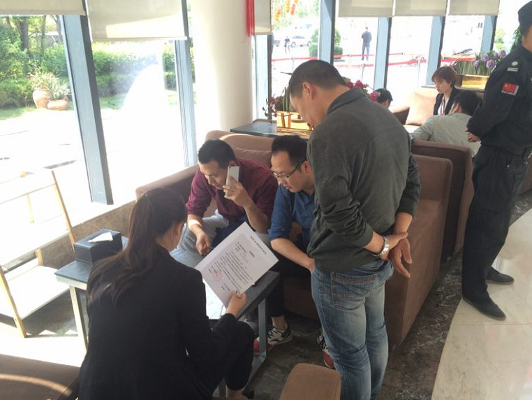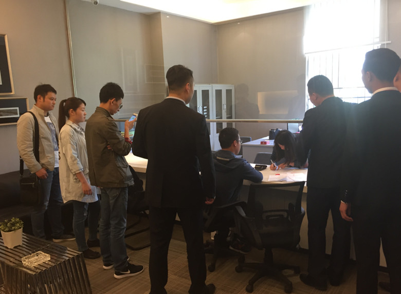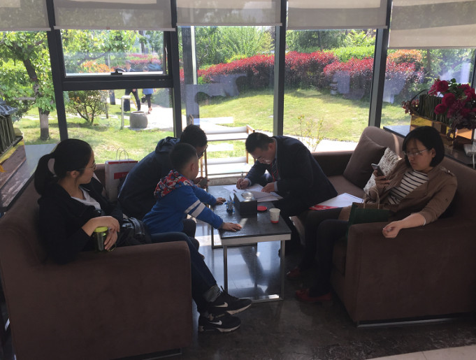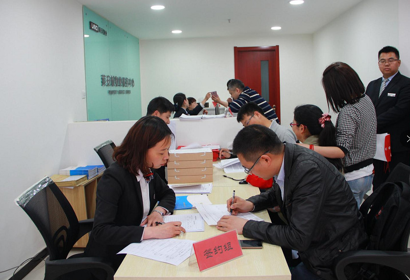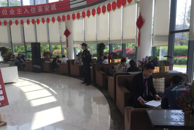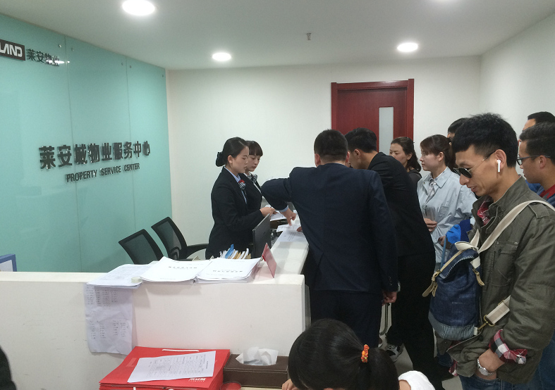 当天上午9点半左右,第一批业主陆续赶到莱安城营销展示中心,前来办理交房入住手续。业主们在销售人员的协助下,办理了交房签约手续。