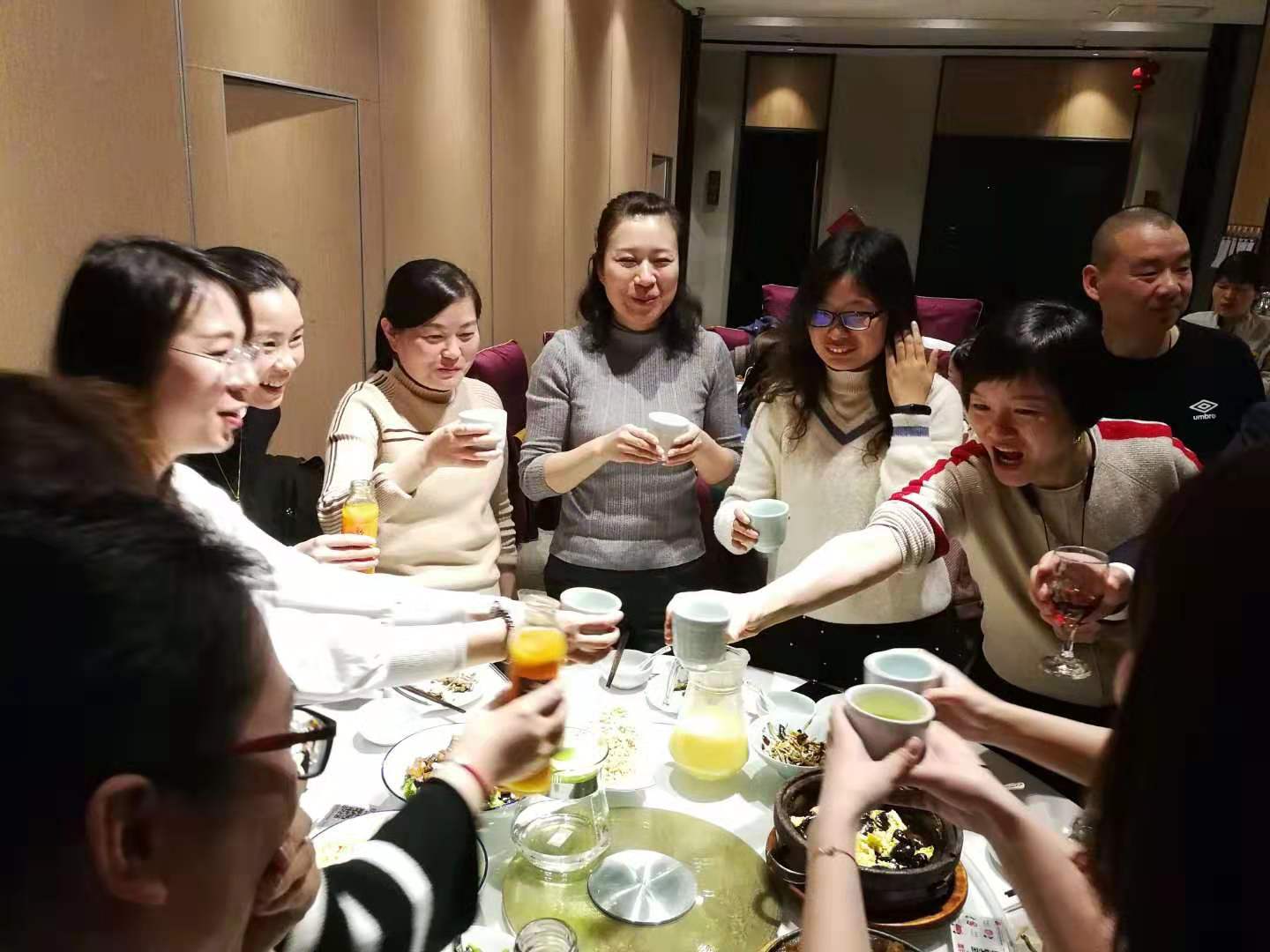 集团领导和女神们共同举杯,