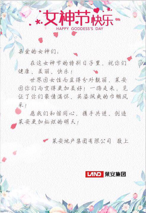 一年一度的三八节到了,莱安集团的女神们已经提前得到了单位的问候和祝福,有物质慰问,也有精神鼓励……