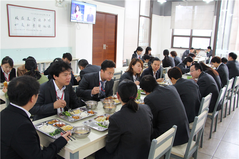 公司的同事们经常在食堂里一边吃着可口饭菜,一边观看午间新闻,这个时候是放松心身的好时机!
