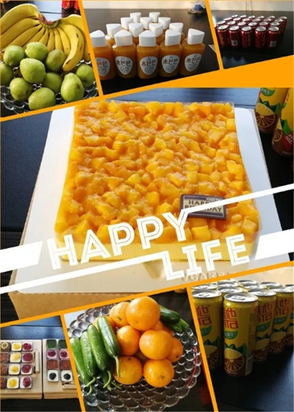 其次让我感动的是集团经常为员工过生日,每个季度都会为员工举办了集体生日会。每逢这个时候,寿星们都会聚集一起,领生日礼物、吃火锅、生日蛋糕、水果、点心等,大家围坐在一起举杯畅饮,过一个有意义的生日。
