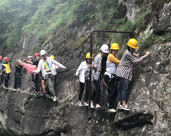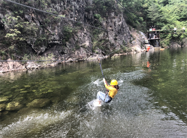 我们穿过静谧的山寨,顺着盘山路信步而行,深入腹地便是峡谷运动乐园——我们本次团建的主要活动地了。峡谷运动乐园全程共有13道水上关卡,项目形式各不相同,每样都让人觉得既惊险刺激又精彩好玩。在参与水上乐园活动项目中,发生了一系列搞笑让人忍俊不住的事情。