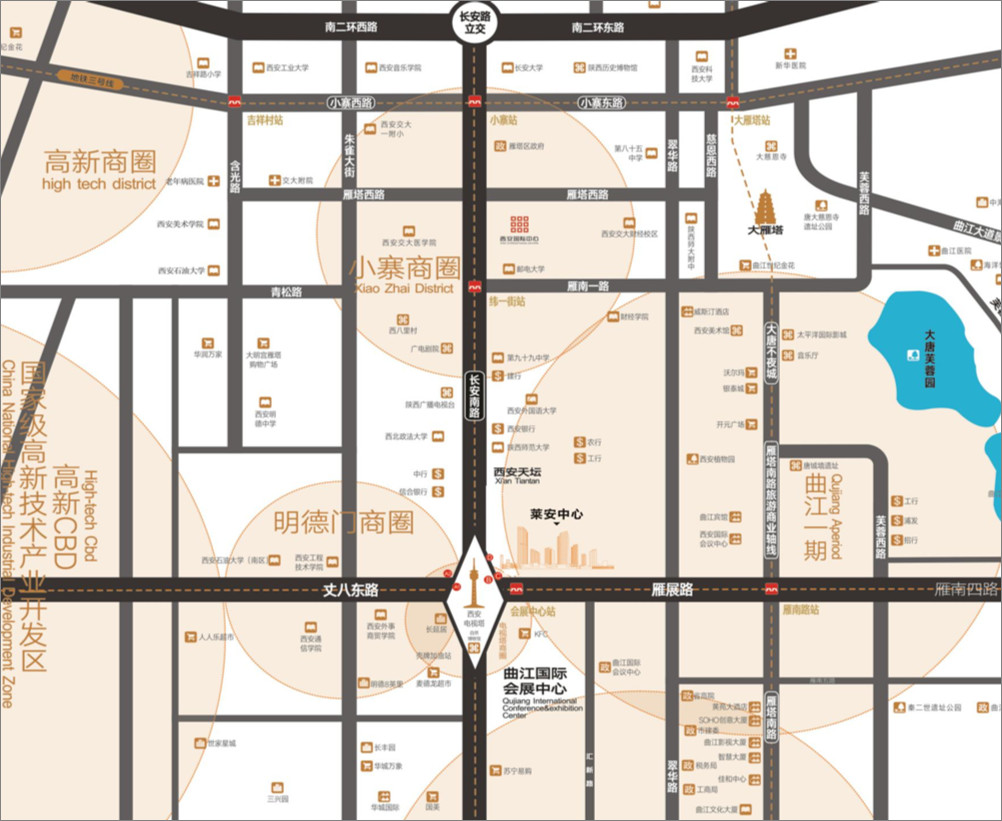 莱安中心作为莱安集团在西安的大型城市综合体,已经取得了良好的销售业绩以及较高的社会评价。项目作为曲江现阶段甲级写字楼建筑群的代表作品,已成为曲江西大门的标志性建筑,并与天坛遗址公园交相辉映。