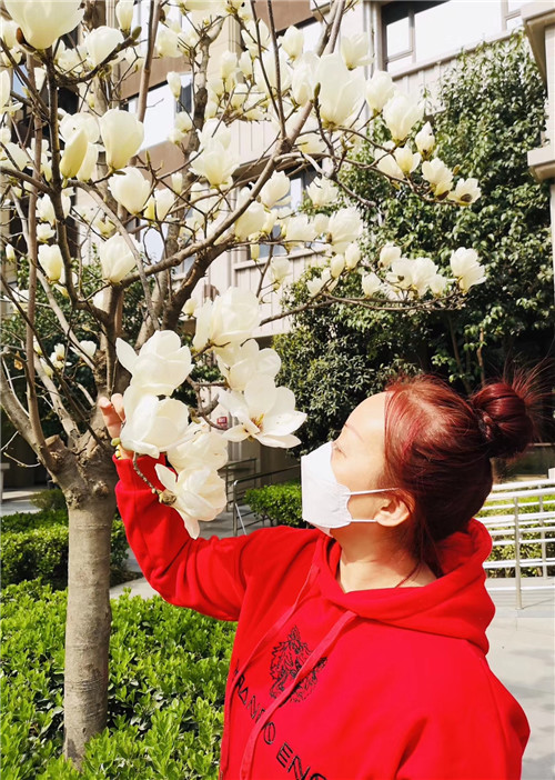 黄玏爱花,也喜欢在花前留影,莱安逸珲院内的美景都在她的镜头里出现过,梅花、桃花、杏花等景致在她朋友圈都可以看到。我说如果举办一场摄影比赛,你肯定能拿奖,她笑着说自己拍照纯属业余爱好。