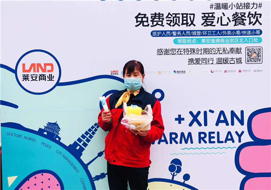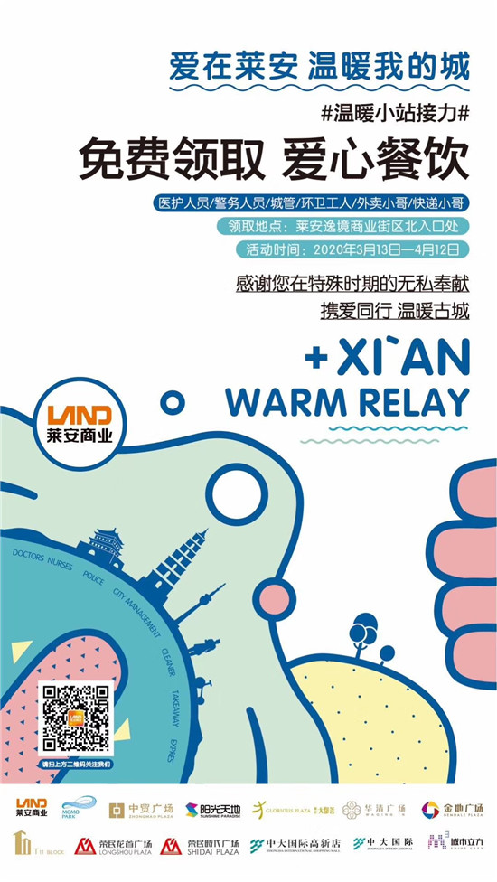 莱安人一直积极支持公益事业,近日莱安商业管理公司为医护人员、警务人员、城管、环卫工、外卖员、快递员免费提供爱心餐饮,举办了送温暖送温情活动。
