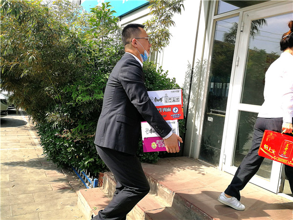 见到慰问组代表集团前来送关怀,
