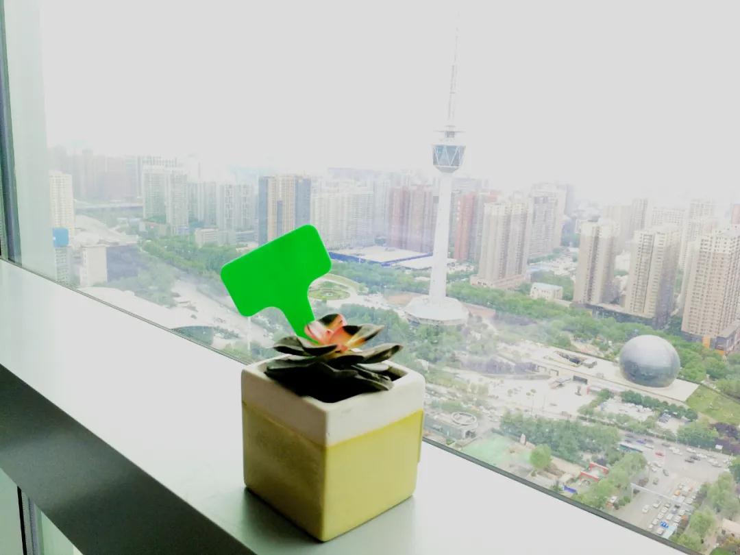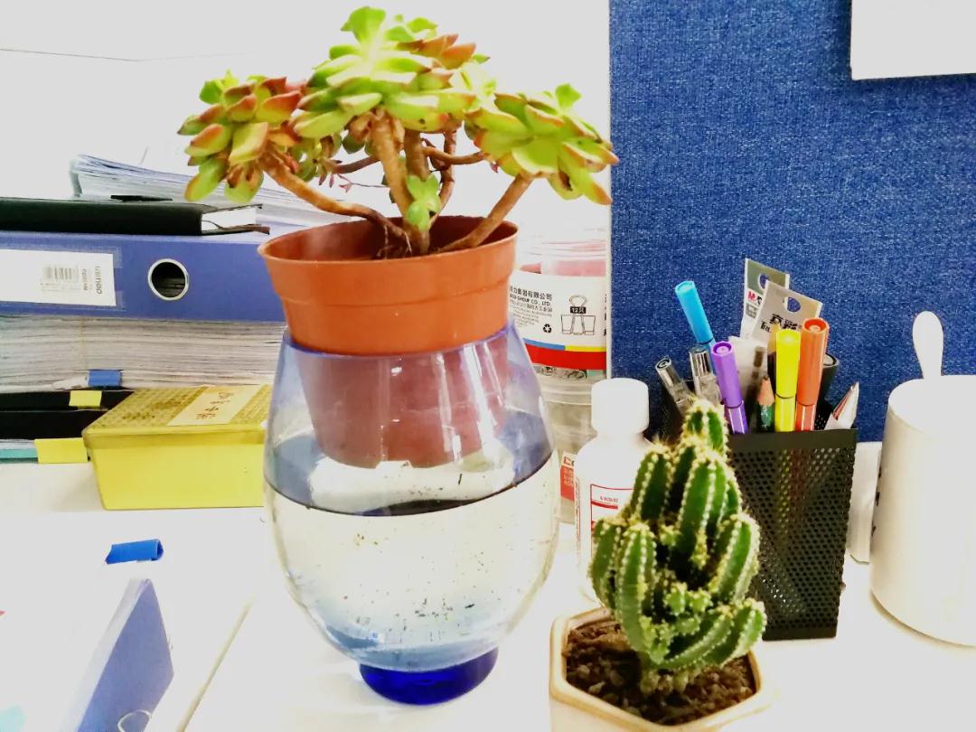 给办公桌旁增添了一丝绿意。