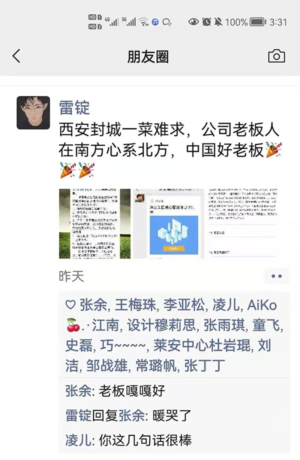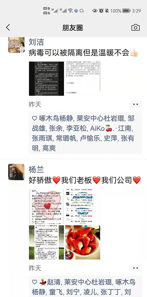 大家每天在部门群里交流沟通, 互相关怀,互相鼓励, 积极乐观地共度艰难时期。