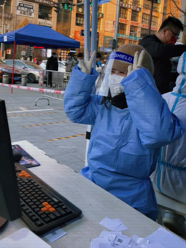 莱安集团接受封闭管控的员工们, 有的在小区里积极支持抗疫, 有的主动到一线当志愿者, 为物业核酸检测增援人力。
