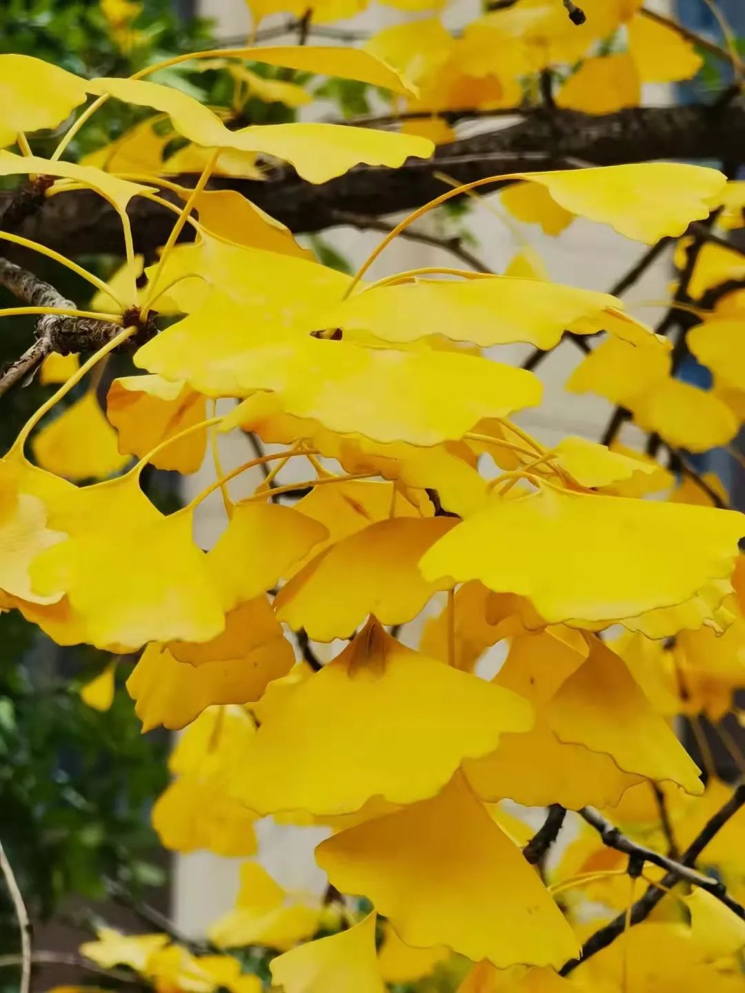 深秋是银杏最美的季节, 一把把金黄色的小扇子, 在阳光下闪着耀眼的光芒, 微风拂过在枝头摇曳……