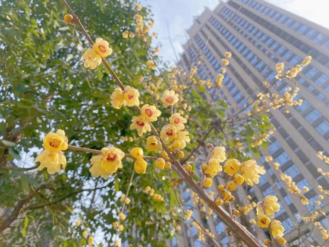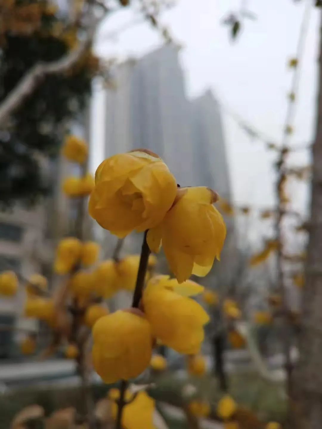 寒冬腊月里, 院内的黄梅, 迎风开放, 朵朵冷艳,缕缕幽香。
