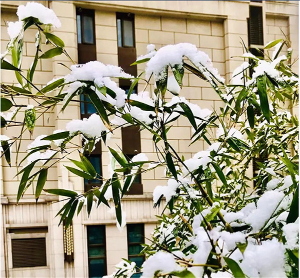下雪的日子, 小院披上了一件美丽的外衣, 院内白雪皑皑,银装素裹, 映衬得翠竹更显挺拔秀美!