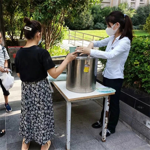 为业主送上了一杯杯绿豆汤