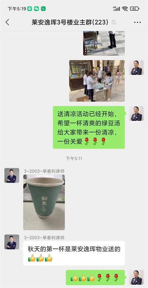 业主们感受到了小区物业送来的一股清凉与一份心意