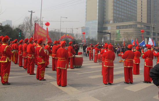 活动现场,民众组织腰鼓队为活动助威、助兴。