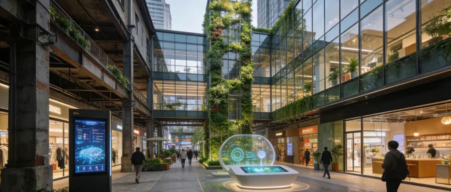 数字化深度渗透:全链路智慧商业生态成型 数字技术不再局限于支付结算、会员管理等基础应用,而是深度贯穿“引流-转化-复购-留存”全链路。未来商业将实现“线上线下一体化”的深度融合:线上通过直播带货、虚拟试穿、AI导购等功能降低消费决策成本;线下依托智能导视、无感支付、精准营销系统提升消费体验;后端通过大数据分析优化供应链管理、商品陈列与库存调配,实现“以需定产”的柔性商业模式。 绿色低碳化:可持续商业成为核心竞争力 “双碳”目标下,绿色消费理念深入人心,商业领域的低碳转型从“可选”变为“必需”。未来商业将在建筑设计、运营管理、产品供给全链条践行绿色理念:采用光伏供电、垂直绿化、雨水回收等低碳建筑技术;推广环保包装、节能设备、绿色物流,降低运营碳排放;引入可持续品牌、二手交易、以租代买等绿色业态,满足消费者低碳消费需求,同时通过绿色认证提升品牌价值。