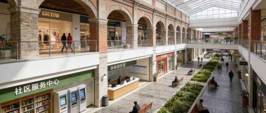 空间功能多元化:商业与公共服务的融合共生 商业空间不再局限于消费功能,而是逐渐成为集消费、社交、文化、公共服务于一体的“城市公共客厅”。未来商业将深度融入城市发展,引入图书馆、社区服务中心、政务办理点、医疗健康站等公共服务设施,同时通过举办文化展览、公益活动、社区市集等,增强空间的公共属性与社群凝聚力。这种“商业+公共服务”的融合模式,既提升了商业空间的使用效率,也强化了与消费者的情感连接。