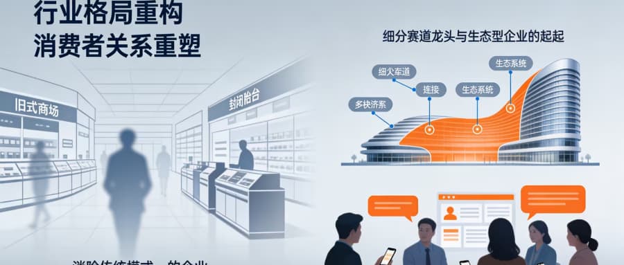 1. 市场竞争焦点转移:从价格竞争、规模竞争转向体验竞争、价值竞争,企业需重新定义核心竞争力。 2. 行业格局重构:缺乏创新能力、依赖传统模式的企业将被淘汰,细分赛道龙头与生态型企业有望崛起。 3. 消费者关系重塑:从“买卖关系”变为“社群关系”,企业需通过持续互动构建长期信任。