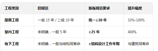 3.增设了避难间和耐火窗,新建的高层住宅强制性增设避难间和耐火窗,有研究显示,高层建筑火灾,主要伤亡是由于人们在仓皇逃生过程中,吸入大量有毒烟雾导致的死亡。也就是说在没有十足的逃生把握的时候,等待救援是保障生命安全的更有效方式。避难间的设置就有了安全保障。避难间的门窗分别为防火门和耐火窗,具有1小时的耐火极限,能够为等待救援争取多1小时的宝贵时间。 4.消防报警和设备上也做了一些升级,新建住宅强制增加了户内的火灾报警,相比之前的住宅楼只在公区设置火灾报警,不能够第一时间发现火情,导致火灾弥漫。同时所有的送排风井道里面也加设金属内衬管道,屋顶必须加设机房保护设备等等。保障了在火灾发生时能够及时报警,设备正常工作。 03全·面·防·水·升·级 防水问题可以说是近些年来大部分建筑的通病,屋顶漏水、地库渗水、外墙渗水、卫生间漏水这些使用中的痛点,经年累月难以根治。针对防水的弊病,国家于2022年颁布了新版的《建筑防水通用规范》,极大的提高了新建建筑的整体防水效果。